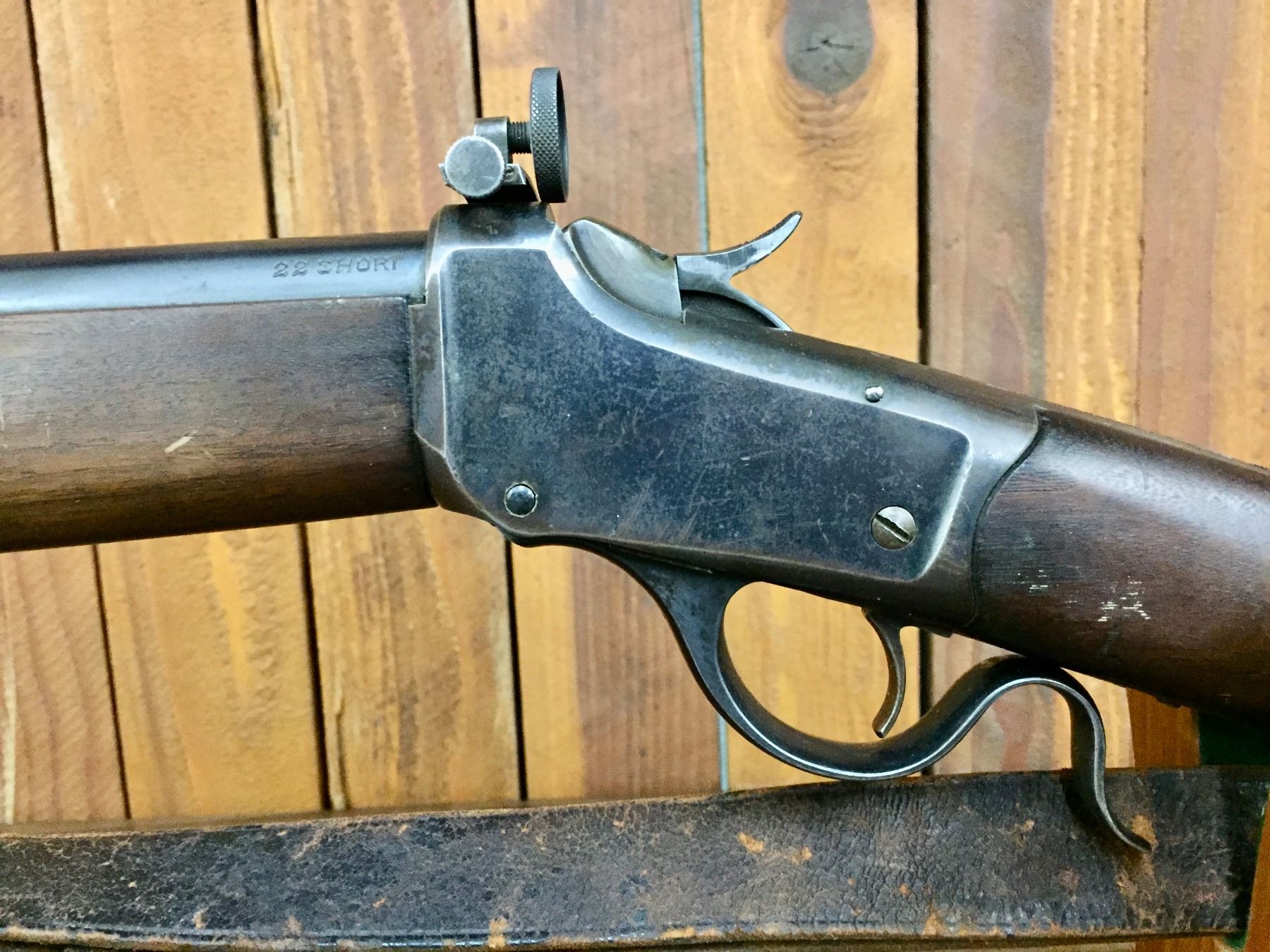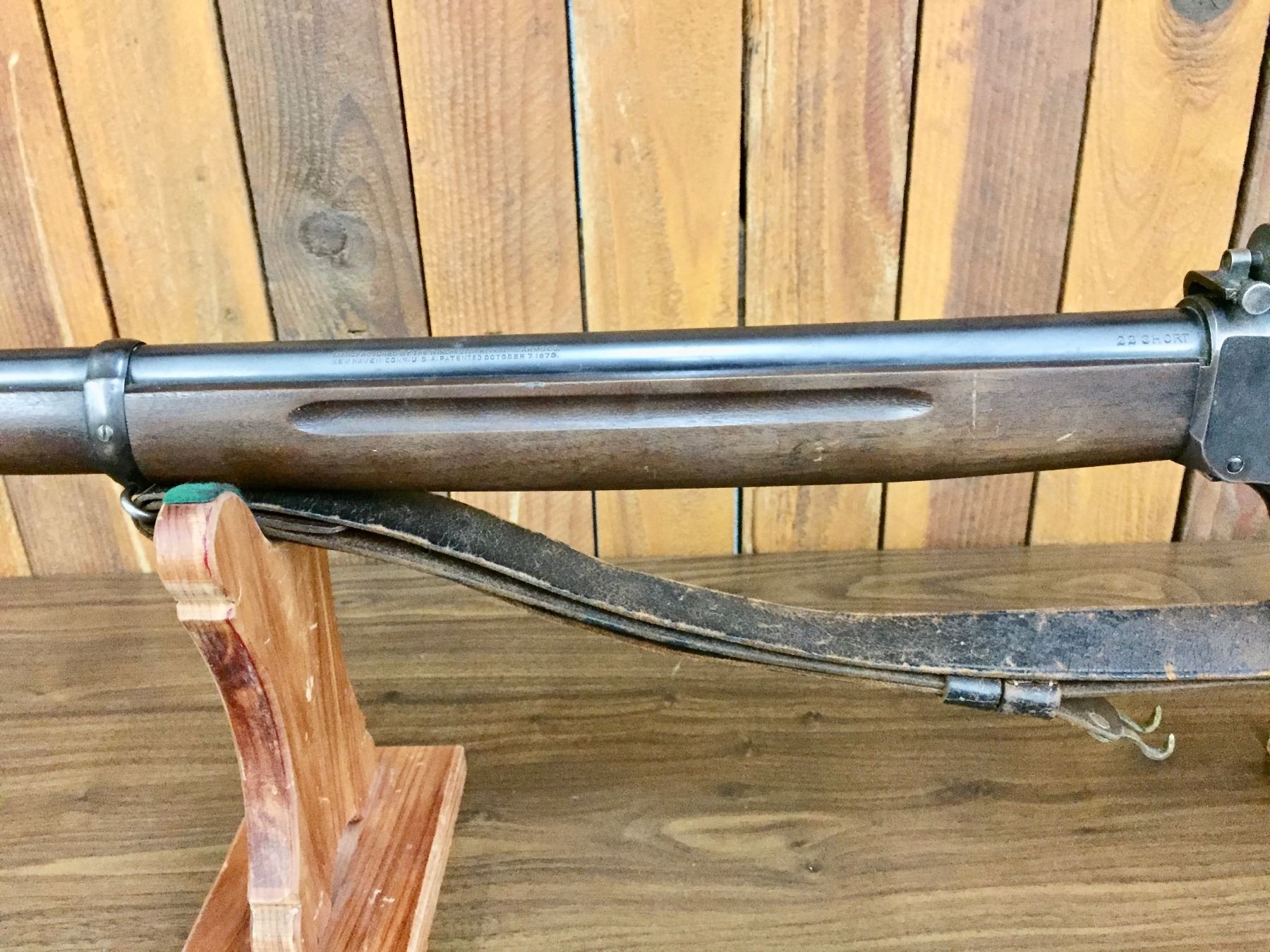 Description: Presented for your enjoyment we offer for sale this Winchester Winder Model 1885 US Training Rifle with original sling. This rifle is an excellent condition, .22 short rim fire, with a Lyman adjustable rear sight. They were contracted by the US Army for training purposes. Maker: Winchester.