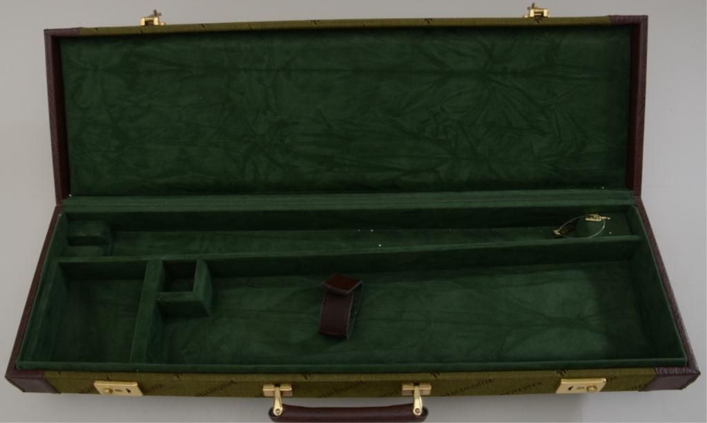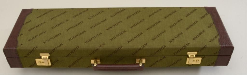 Winchester factory hard case for small gauge shotgun (Winchester 23 or similar). Green "Winchester" fabric with vinyl ends, and green felt interior. Case is in excellent condition with only slight handling marks.Est. $150-$300.