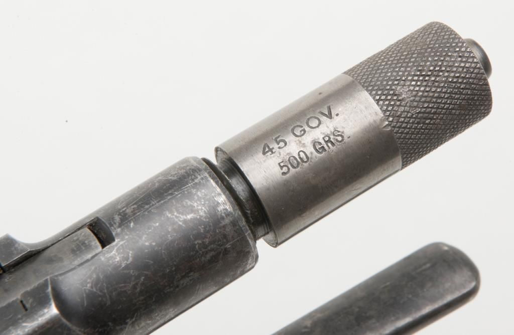 Winchester loading tool marked. 45 government, 500 grain bullet in good to very good condition. Considerable traces of original blue and sharp overall. Est.: $125-$250