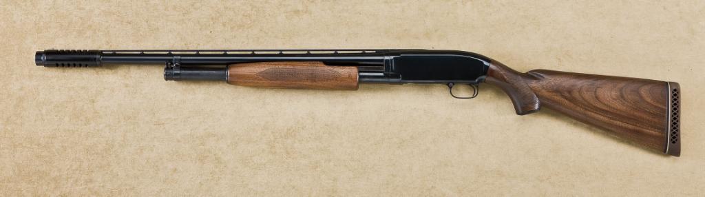 Winchester model 12, 12ga, choked WS1 for skeet, Simmons type ventilated rib, Cutts adjustable choke added, nicely restocked and refinished with hard rubber. Serial number “1488144”. The condition is fine to near excellent as restored with some minor losses at operating areas. Est.: $400-$800.