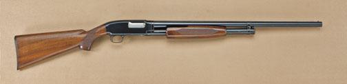 Winchester model 12, 16ga, factory Skeet marked, 26” barrel, raised milled rib, select checkered wood stocks, hard-rubber pistol grip cap and buttplate, serial #803263. Barrel shows 2-3/4” chamber marking and Improved Cylinder with Winchester Proof Steel and factory logo. The gun remains in fine to near excellent condition with 90-95% original blue, some thinning at the edges and operating areas. The stocks are original and very good plus to near fine with just some minor scratches and slight marks. The action is tight, the bore near excellent. A scarce configuration in the model 12, being 16ga and factory skeet marked. Est: $750 - $1,500