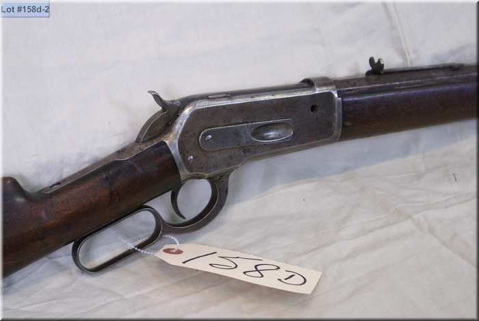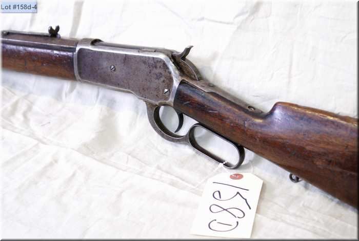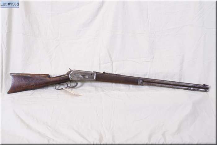 Winchester model 1886 Circa 1888 ( Third year of Production) .40-65 WCF lever action Rifle w/26" oct bbl full mag [ traces of patchy blue finish, w/barrel sights, rcvr has faint traces of case color, missing the right side front screw, butt stock chipped both side upper tang, has multiple gouges, forend appears good , crescent butt plate, small hook ring for sling behind lower tang ] Ser # 26487