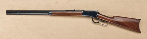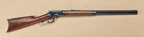 Winchester model 1892 lever-action rifle, .38-40 caliber, 24” octagon barrel, full magazine, rifle butt, serial #18543. The barrel and magazine tube show 95-98% original blue, some just slight losses at the edges. The front portion of the barrel ahead of the barrel address is stamped in hand-held stamp Bureau County, which is located in Illinois and is probably a Sheriff or PD gun. The frame shows 90-95% bright original blue, some losses at the top edges, some slight staining and erosion in those areas. The balance of the blue is very inky and bright. The hammer and loading lever show 90-95% case hardening with some vibrant areas. The buttplate shows 75-85% case hardened colors, the forend cap shows 90% thinning blue. The stocks are fine to near excellent with just a couple of minor storage and handling marks. The barrel shows 98% bright blue, the bore is excellent. Would be hard to improve upon the condition of this early 92 made about 1893 with probable law enforcement issue. Est: $4,500 - $6,500