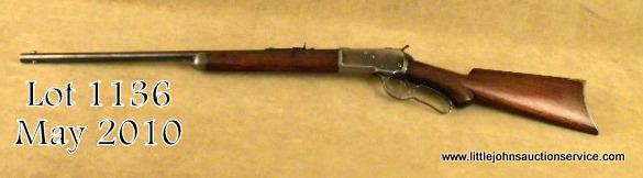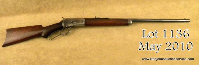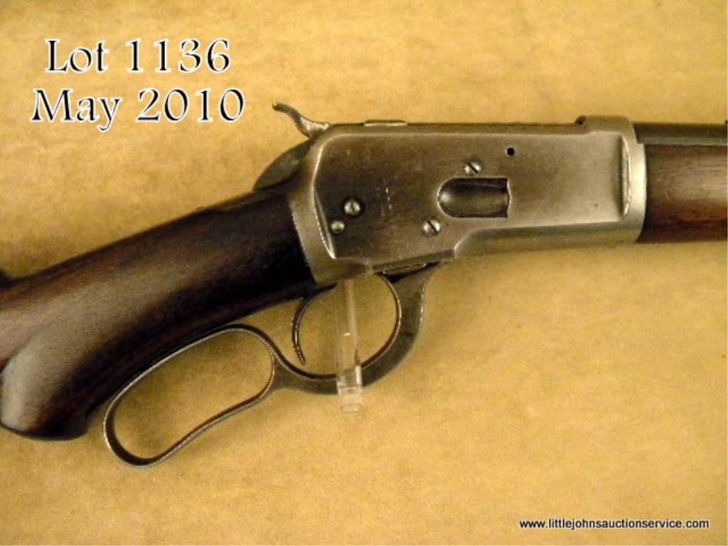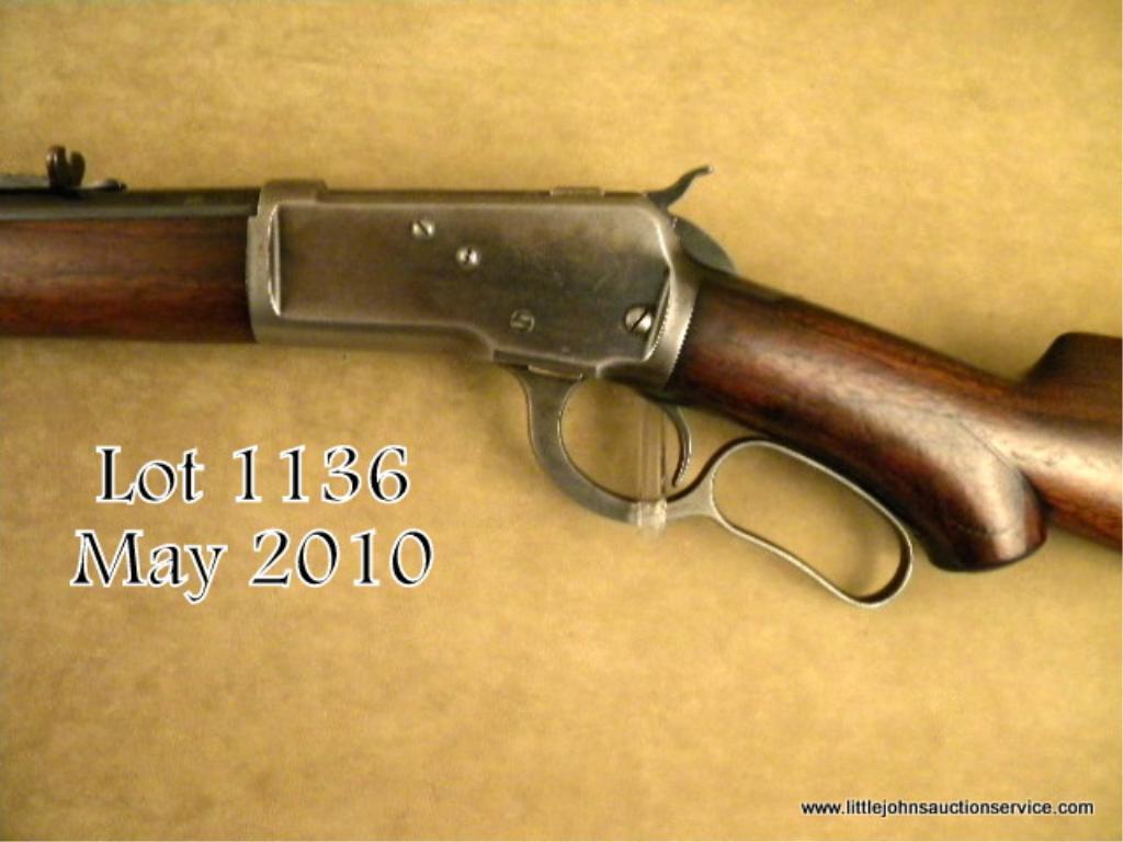 Winchester model 1892 special order rifle, .32-20 caliber, 24" round barrel, button mag, checkered pistol grip stock, crescent butt, #235125. The barrel shows 85-95% evenly thinning and toning blue finish. The frame shows 10-20% blue driftedto a grey patina. The forend cap shows traces of blue. The stocks are good with wear to the checkering, almost worn smooth on the forend. Some minor dings, mars, scratches and dents, some light cleaning with steel wool, but still goodwood to metal fit. Tight action, excellent bore. A nice semi-deluxe '92. Est: $2,500 - $5,000