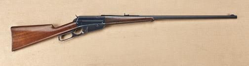 Winchester model 1895 lever-action rifle. 30-40 caliber, 28” round barrel, in near fine original condition, serial #20499. The rifle shows standard wood stocks and steel shotgun-type buttplate. The barrel retains 95-98% original blue. The action shows 90-95% original blue, some slight losses at the edges, some minor spots and small areas of pinprick pitting and erosion just starting. The stocks are very good plus with 50-60% varnish remaining on the buttstock, traces on the forend, some scratches, minor mars, handling, and normal use. A few small losses along the buttplate. Crisp markings, good action, fine bore. A crisp 95 with a lot of finish. Est: $2,500 - $3,500
