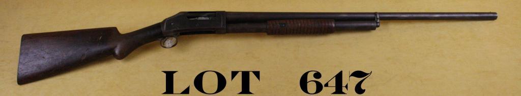 Winchester model 1897 12ga pump-action shotgun, 30” full choke, serial #156917. Fair condition, traces of blue, wood slightly rough, original buttplate, good action, good bore. Est: $250 - $500