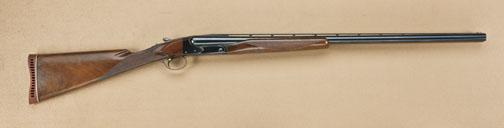 Winchester model 21 factory trap marked, 12ga, side by side shotgun, 30” barrels, factory ventilated rib, single trigger, auto ejector, English style straight stock, beavertail forend, choked Full and Full, serial #260987. The barrel and receiver show 97-99% original blue, some slight losses at the edges from handling and minor use. The stocks show 90% original varnish, slight refreshening to the checkering, addition of recoil pad, and are very good plus to near fine overall with just a couple of minor imperfections. The hard-rubber antique recoil pad needs replacement and shows fitting at rear of buttstock. The action is tight, the interior shows little use and the bores excellent. From the Robert Petersen estate. Est: $2,500 - $5,000