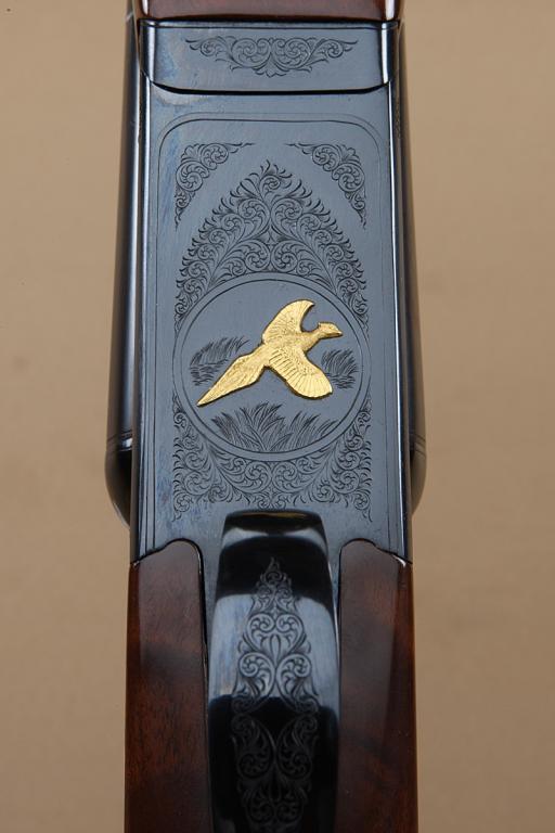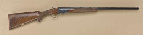 Winchester model 23 Classic 20ga side by side shotgun, factory 26-1/8” barrels, choked “Improved Cylinder” (right), “Modified” (left), factory ventilated rib, single trigger, auto ejector, blue finish, gold bird on bottom of frame. Checkered select burl-wood stock with pistol grip. Shows full factory original length stock and Winchester hard-rubber buttplate, 14” to the end of the wood, nearly 15” to the end of thehard-rubber pad, which is an addition and possible custom factory order. The gun is in fine to excellent condition showing minimal use and is 98-99% plus. In Winchester luggage-type case. Serial #CL20-437E. Fromthe Robert Petersen collection. Est: $1,250 - $2,500