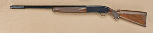 Winchester model 50 12ga semi-automatic shotgun, steel frame, ventilated rib, Cutts compensator added, serial #15894. The gun shows proper proof mark on side of rib and the compensator is possibly added through the factory. The gun shows 95-98% original blue, the stocks are very good plus, just some minor loss at the edges and buttplate, normal handling. The action is good, the bore is very good plus to near fine. Est: $350 - $700