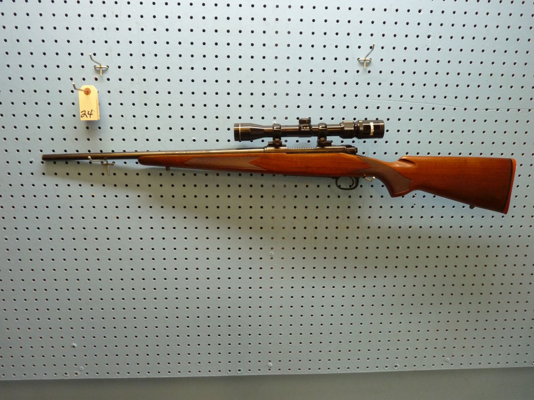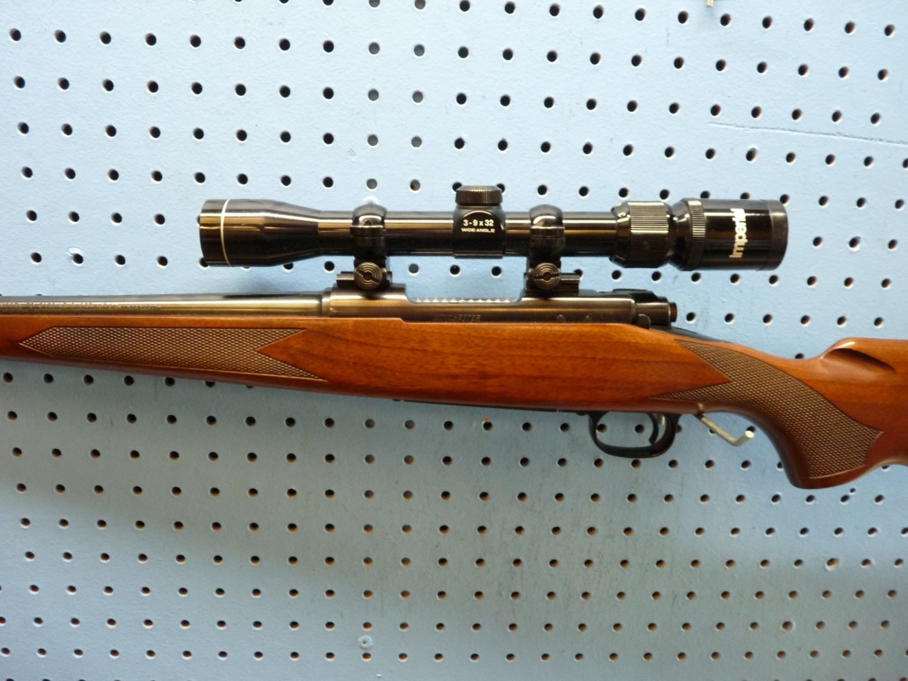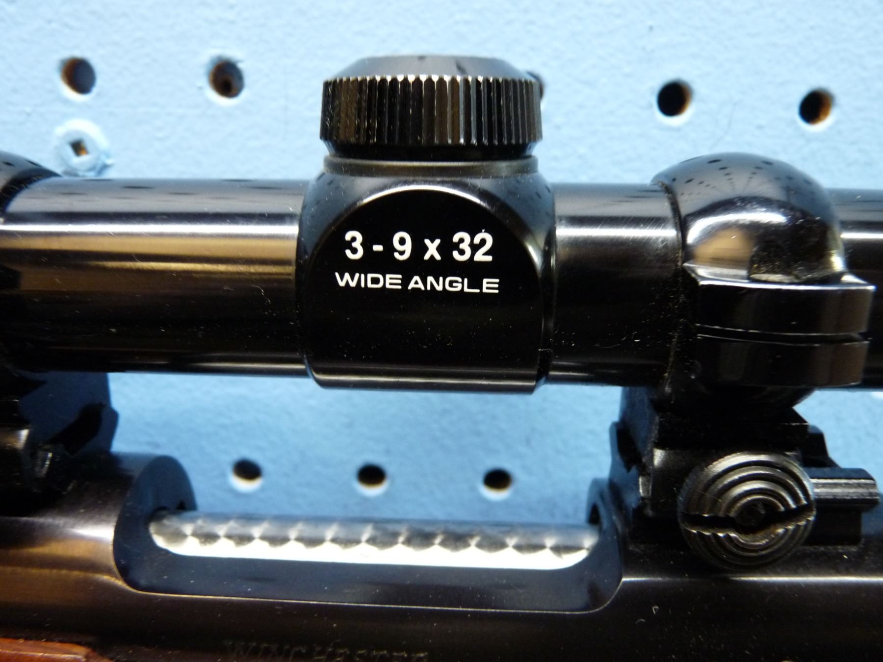 Winchester, model 70 Carbine short action , caliber 22 - 250 , bolt action , floorplate , imperial 3-9X32 wide angle scope