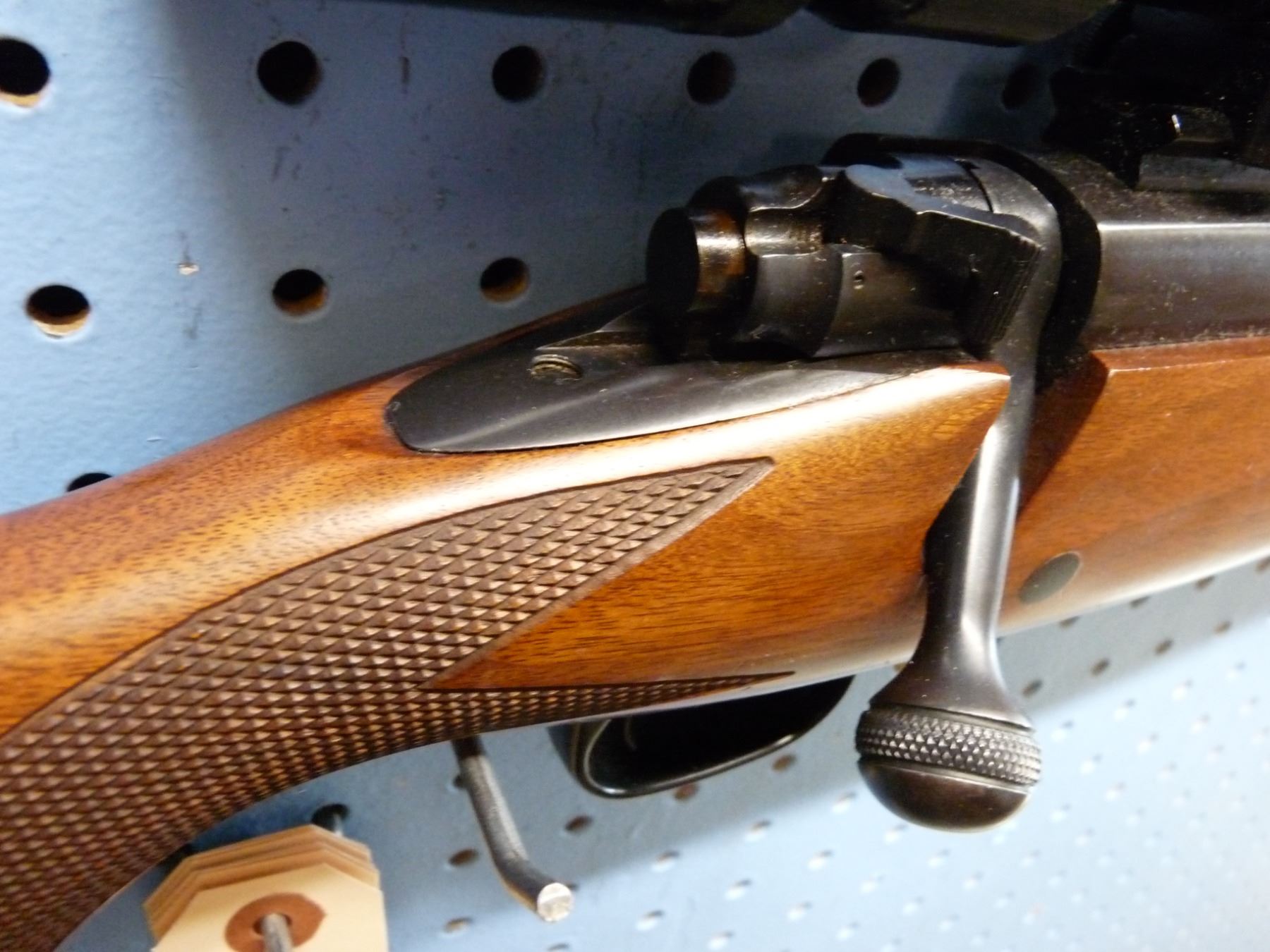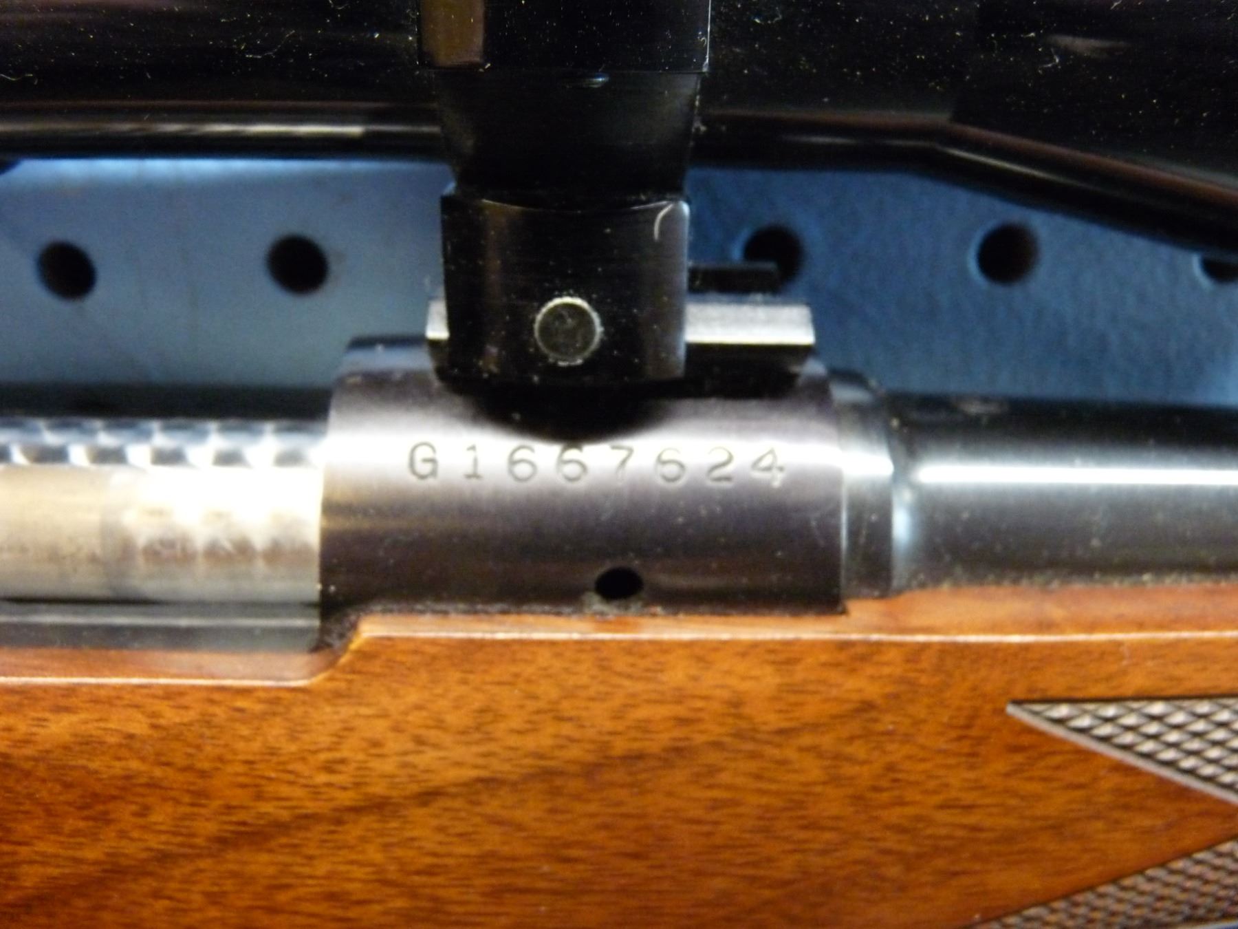 Winchester, model 70 Carbine short action , caliber 22 - 250 , bolt action , floorplate , imperial 3