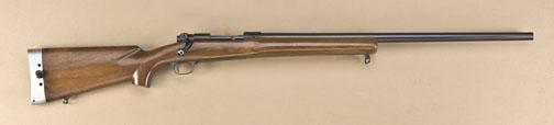 Winchester model 70 factory heavy barrel target rifle, .243 Winchester caliber, 26” heavy round barrel, target type stock with adjustable sling positions, matte finish, serial #379391 with adjustable aluminumbuttplate. The rifle remains in very good plus to near fine condition with 95-98% original condition, stocks are very good plus with some minor marks from use and storage. Good action, fine bore, crisp overall.Difficult to find a heavy-barrel .243. Barrel shows tap holes and screws for scope, also two tap holes and screws at muzzle. Est: $800 - $1,600