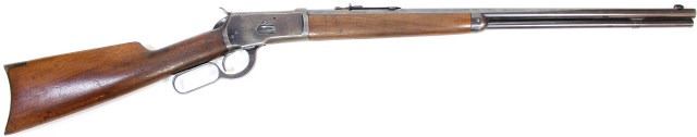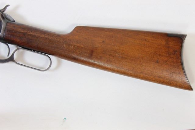 lever action rifle with 24" round barrel, full mag and standard walnut stocks, crescent rifle butt. Remains very good, top of barrel and receiver with "P" proof marks, barrel shows thinning blue to plum, mag tube with bright blue, receiver 30-40% original blue, original walnut stocks very good, excellent action, very good bore. Modern. Est. 1000-1600