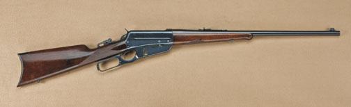 Winchester model 95, .30-40 caliber lever-action rifle, factory 22” round barrel, blued finish, checkered wood stocks, serial #65565. With Lyman type tang sight added. The rifle shows 90-95% original blue, some losses at the operating areas of the action, some scratches, and some small losses from being rubbed on the left side of the barrel, about 5” back from the muzzle that is minor. The left side of the receiver shows two non-factory tap holes for receiver type sight, the checkered wood select stock has been refinished long ago and shows a nice grain. The action is crisp, the markings are sharp, the bore is excellent. The refinish work on the stock is very good and the wood to metal fit is excellent. Est: $750 - $1,500