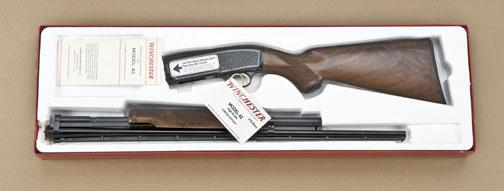 Winchester “new series” model 42, 410ga pump-action shotgun, 26” barrels, 3”, Full choked, high-grade, in box, Japanese made. Excellent to new condition with stickers and tags, no evidence of firing, slight storageand handling, possible test firing only. 99% to new. Serial #WFT003.From the Robert Petersen collection. Est: $1,000 - $2,000