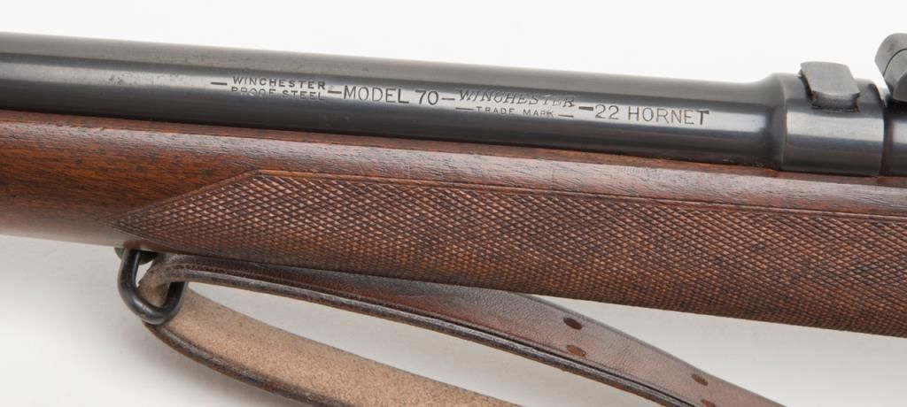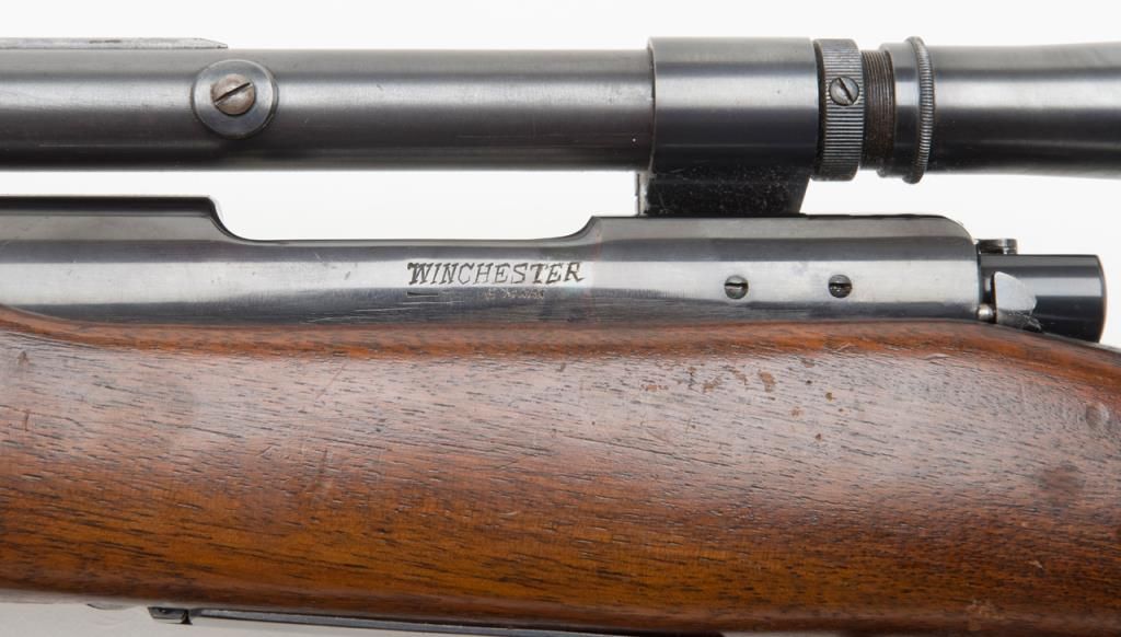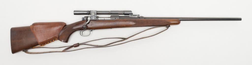 Winchester pre-64 Model 70 bolt action rifle, .22 Hornet cal., (chamber opened for wild cat), #8913. Classic old small tube scope on Stith mount; stock and metal re-worked; a parts donor for a quality rebuild or affordable shooter. Est.:$600-$1,200.