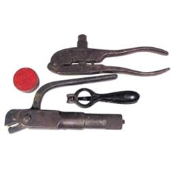 Winchester primer presses, marked 30 & 32 WCF, pat. 1882-1894, 1 smaller primer press w/no mark, 5"L & 1 tin of U.M.C. No. 2 Primers.
