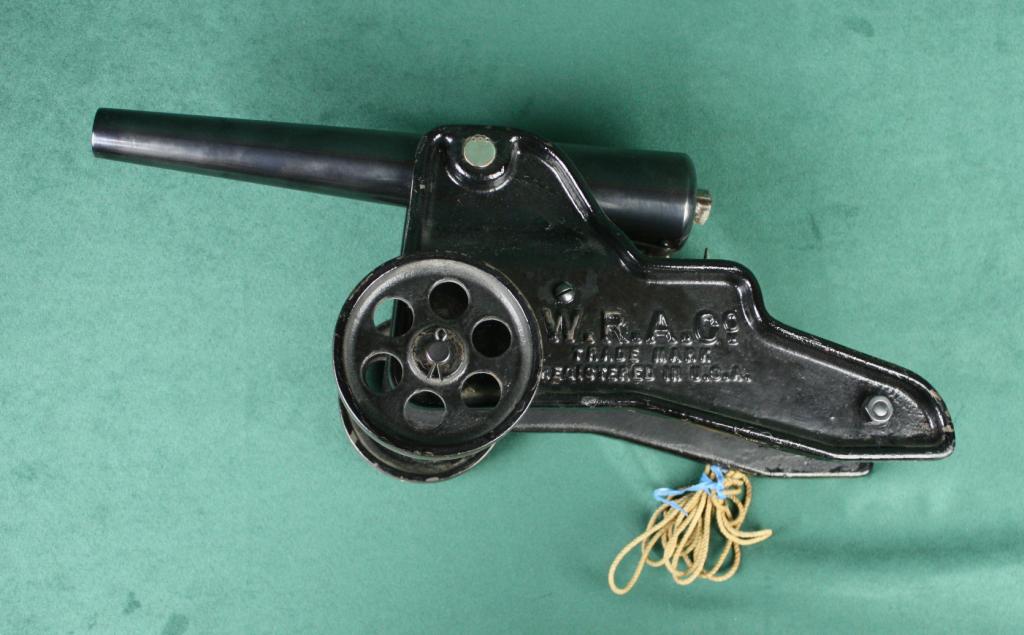 Winchester signal cannon, on iron carriage, approx. 17” overall and approx. 7” in height; in overall very good condition. A great Winchester collectible. Est.: $200-$400.