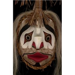 Wind Mask by Tom Patterson with Horsehair 10" W. 11" H. (23" H. with Cedar) Fine Condition