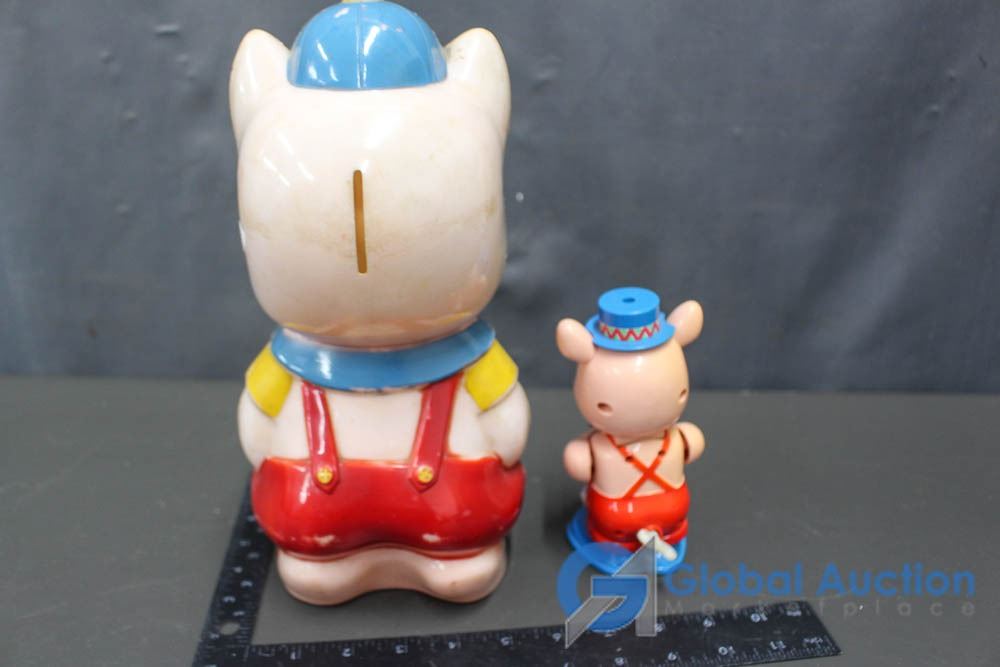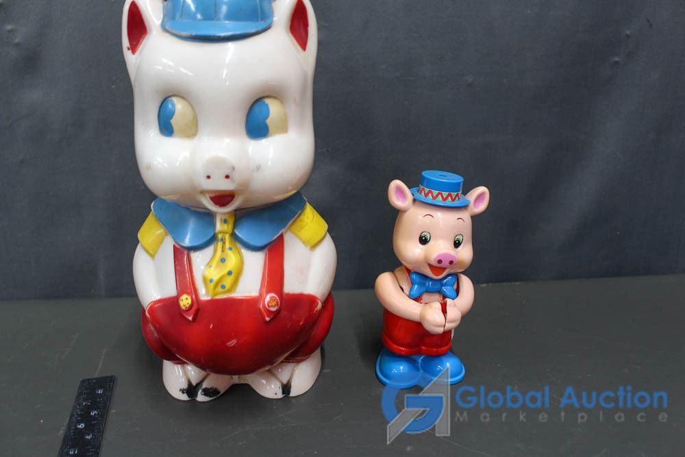 Wind Up Plastic Pig Toy and Large 11" Piggy Plastic Bank