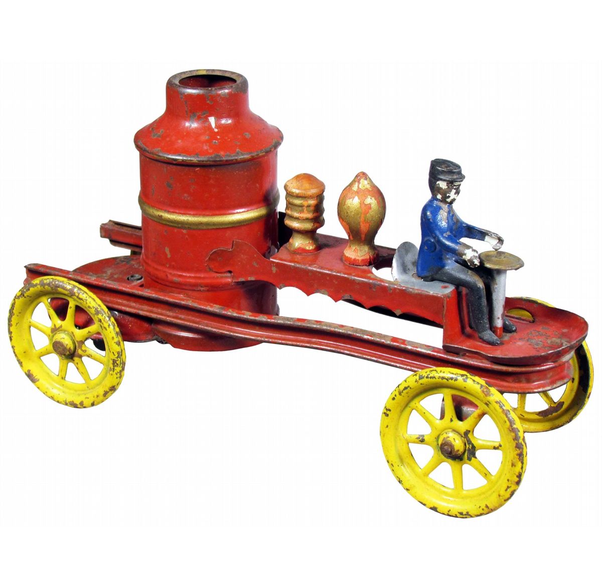 Wind Up Tin Fire Pumper Toy. Paint wear otherwise good condition. 9 1/4 inches long.
