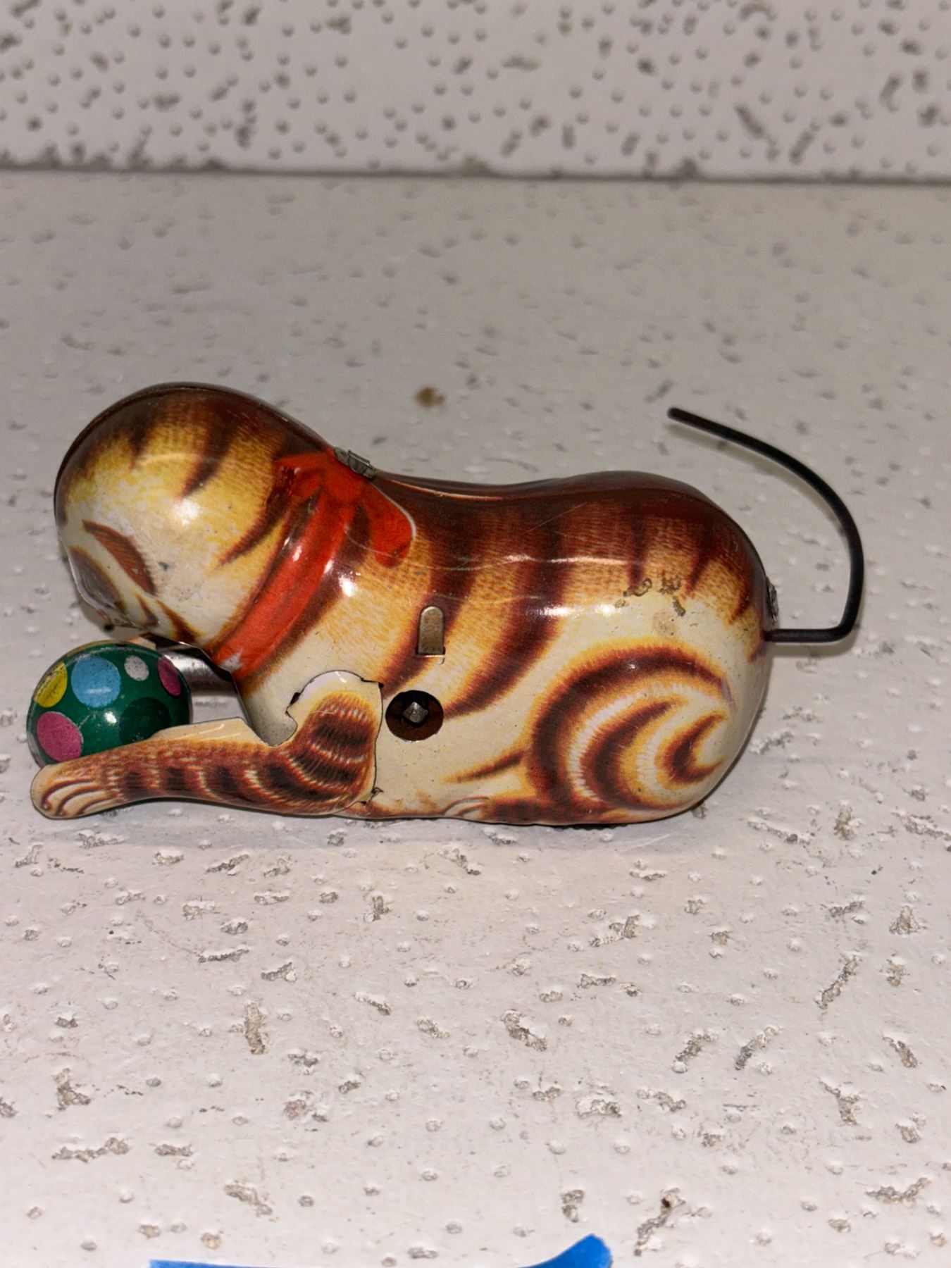 Wind up Tin Cat with Ball