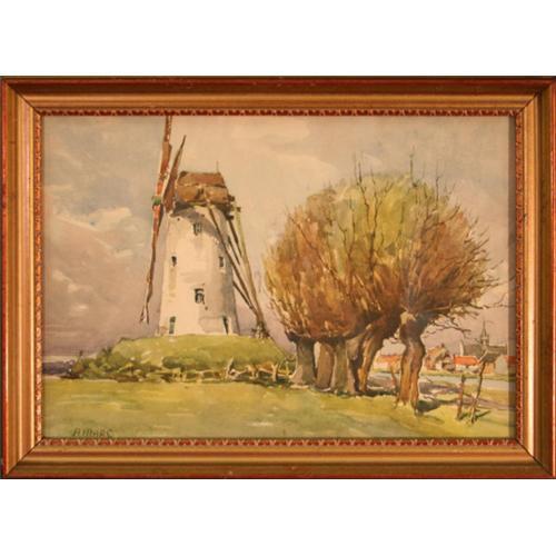 <tr><td>Title:"Windmill by Waterside" by A. Marc - watercolor</td></tr>
