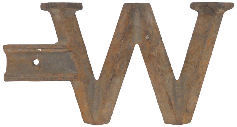 Windmill weight, letter "W", made by Althouse-Wheeler Co.-Waupun, Wisc., cast iron, VG cond, 9"H x 1