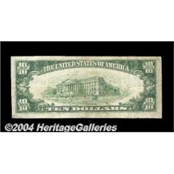 Windsor, MO - $10 1929 Ty. 1 The First NB Ch. # 9519Type ones only from this scarce bank, which shows a population of one uncut sheet and just four single notes in small. This is a nice one. Bright Very Fine, the top margin trimmed just a bit close. <BR><BR><B>Important notice:</B> Heritage usually auctions material at the rate of 200-250 lots per hour. On some occasions eBay Live bid software or the Internet may not be able to keep up with the pace of the auction. We recommend placing a realistic absentee bid now as insurance to avoid disappointment. Occasionally the auctioneer may eliminate or reject an eBay Live bid, and the auctioneer may also reopen a lot after the close of the eBay live bidding (usually because we missed an audience bid), and may reject your bid even if it shows you as the winning bidder. By bidding via eBay Live, you agree that Heritage may award the lot to another bidder at its sole discretion under the circumstances described above or any other reasonable circumstances. Since eBay bids are not shown to us until we open the lot on the floor, we treat those bids just like floor bids. In most cases the floor responds before the eBay bid is presented to us, due to Internet lag time, so for consistency we have made it a policy that floor bids are always considered first over tie eBay live bids. Also please note that all Heritage lots purchased through eBay Live carry a 20% Buyer's Premium. Please make sure you read the Terms and Conditions before you bid. <BR><BR><B>IMPORTANT ANNOUNCEMENT ABOUT RESERVES:</B> Heritage now divulges all reserves on its web site 7 days before every auction. If you want to know whether the reserve on this lot has been met, and if not, what the reserve amount is, please visit this lot page on the HeritageCoin.com web site, or email: bid@HeritageGalleries.com