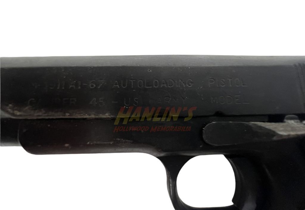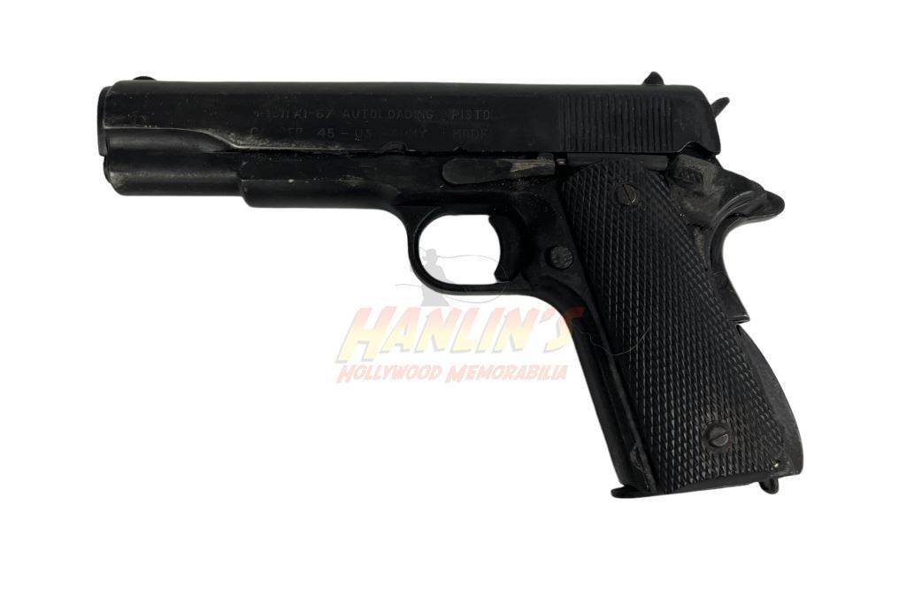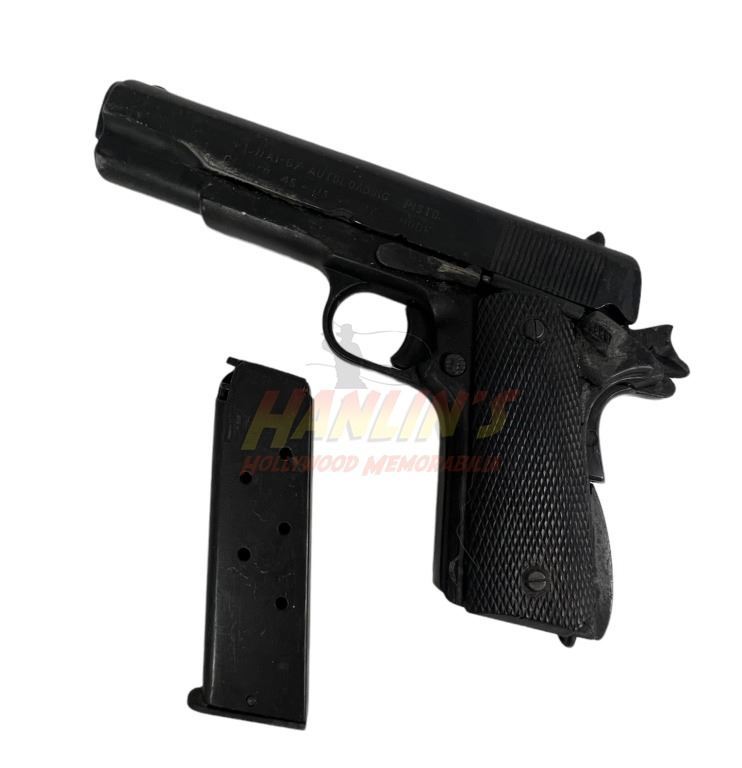 Original hero blank firing 1911 and Us military Holster used by "Joe Enders", played by Nicolas Cage in the John Woo directed war film 'Windtalkers' (2002), based on the real story of Navajo code talkers during World War II.