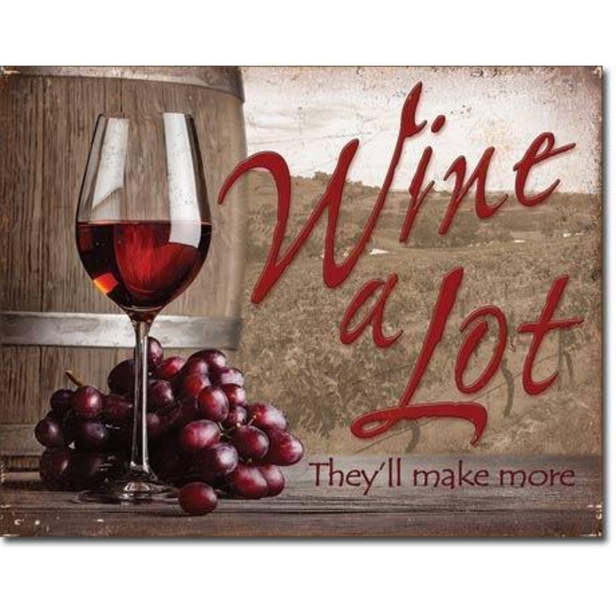 Wine A Lot metal pub bar, wine bar sign. Pre-drilled holes for mounting. 12 1/2" X 16".Â