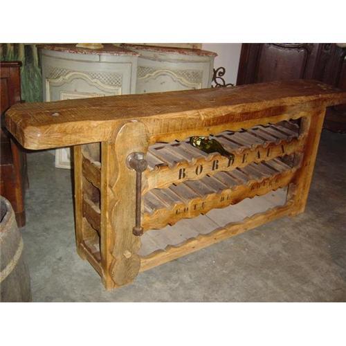 This is a wine carrier from France that was converted from an antique etablis or work bench. The wood is old and worked, yet the construction of the piece is remarkably solid. It has a vice and the word "Bordeaux" stenciled in black paint. Please contact us for more pictures or information. Thank you! Le Louvre Antiques
