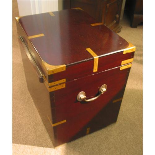 RARE British Army Officer's Mahogany Brass clad cellarette. Contains 6 sections for wine bottles. Lockable with original key. Dulled Brass Original Handles on sides for easy transportation (could be polished if required).