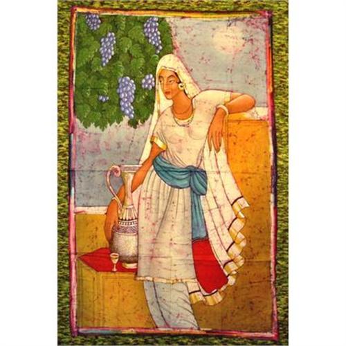 <table width="100%" border="0" cellspacing="0" cellpadding="4"><tr><td><em> HUGE with measurements of of 2.5 X 3.8 feet </em></td></tr><tr> <td width="100%"> PLEASE note I only ship to the continental USA and Canada and if paypals is used the address MUST BE CONFIRMED<p>...This marvellous wall hanging of 2.5 X 3.8 feet in size is an outstanding example of the traditional batik technique prevalent for quite some time now for dying cloth using wax for distributing colours on cloth's surface. The natural texture, which the flaking of wax creates on the waxed surface of the cloth, is the most special attribute of batik technique. It often surprises how a batik artist might arrive at proportions, minute details and perspectives and express moods, mind and emotions with artistic finesse and precision when he is aface with a medium so uncompromising and uncontrollable as wax. (b226) </td></tr><tr> <td> </td></tr><tr> <td>Reference #: b226</td></tr><tr><td>Condition:New</td></tr><tr><td>Year:2004</td></tr><tr><td>Country:India</td></tr><tr><td>Maker:unknown unsigned</td></tr><tr><td>Height:2.5 X 3.8 feet </td></tr><tr><td>Title:Wine and Beauty Batik Painting</td></tr><tr><td>Style:batik painting on cotton</td></tr><tr><td>Type:batik</td></tr><tr><td>Location:Saskatchewan, Canada</td></tr></table>
