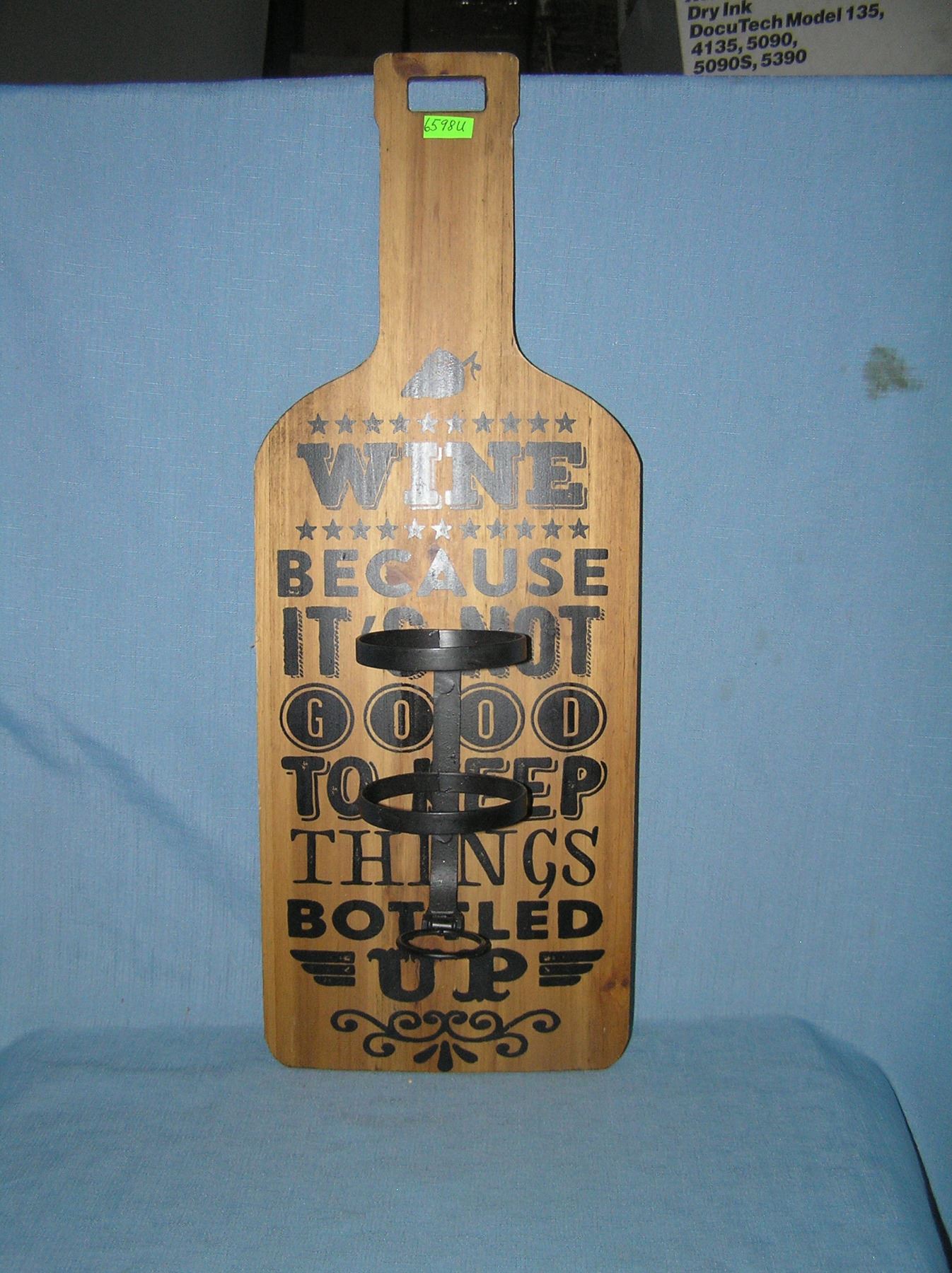 Wine because it's not good to things bottled up metal and wood bottle holding display sign est. value $40.00-$45.00