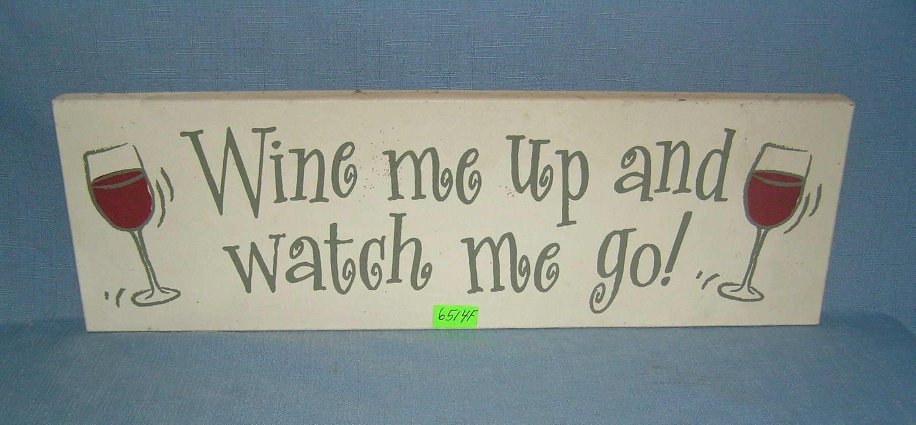 Wine me up and watch me go wood display sign est. value $30.00-$35.00
