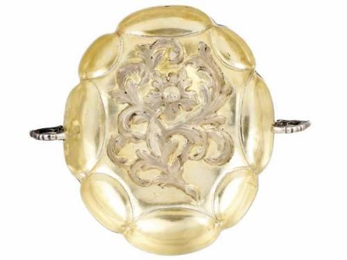 Silver, 117 g. Chased and matted, lobed bowl with cast handles. Interior with vermeil and stylised floral decoration. Marked: Vienna, 1766, Anton Carl Wipf, Viennese restaming from 1806-07. Neuwirth: P. 39. Size: 14 x 15 x 3.5 cm