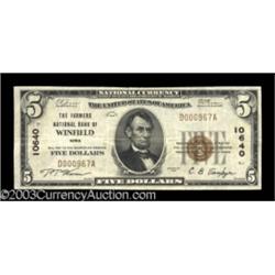 <TABLE cellSpacing=0 cellPadding=0 width="100%" bgColor=#000000 border=0><TBODY> <TR><TD width="100%"><TABLE cellSpacing=1 cellPadding=3 width="100%" border=0><TBODY><TR><TD width="100%" bgColor=#79735c><FONT face=arial color=#ffffff size=3><B>Description</B> </FONT></TD></TR><TR><TD width="100%" bgColor=#ffffff><FONT face=arial size=2><B>Winfield , IA</B></I> - $5 1929 Ty. 1 <B>The Farmers NB</B></I> Ch. # 10640<BR>A very scarce note from the only bank to issue from here. The Kelly census shows just five Series 1929 examples extant, with this certainly one of the very nicest. <B>Very Fine.</B></I> (450-750 ) </FONT></TD></TR></TBODY></TABLE></TD></TR></TBODY></TABLE><BR><TABLE cellSpacing=0 cellPadding=0 width="100%" bgColor=#000000 border=0><TBODY><TR> Important notice: Heritage usually auctions material at the rate of 200-250 lots per hour. On some occasions eBay Live bid software or the Internet may not be able to keep up with the pace of the auction. We recommend placing a realistic absentee bid now as insurance to avoid disappointment. Occasionally the auctioneer may eliminate or reject an eBay Live bid, and the auctioneer may also reopen a lot after the close of the eBay live bidding (usually because we missed an audience bid), and may reject your bid even if it shows you as the winning bidder. By bidding via eBay Live, you agree that Heritage may award the lot to another bidder at its sole discretion under the circumstances described above or any other reasonable circumstances. Also please note that all Heritage lots purchased through eBay Live carry a 20% Buyer's Premium. Please make sure you read the Terms and Conditions before you bid.</TR></TBODY></TABLE>