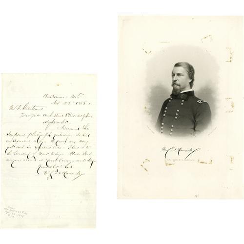 <B>Winfield Scott Hancock Sends His Photo - to the Secretary of War!</B></I> Autograph Letter Signed, 1 page, 5" by 8", Baltimore, November 25, 1865. To the famed Civil War and Lincoln photographer F. Gutekunst in Philadelphia. Fine. "<I>I received the Imperial Photograph yesterday: it was an excellent copy. The frame was very good and in excellent taste. I sent it to the Secretary of War today. Please send me our account at your leisure and oblige.</B></I>" From the Henry E. Luhrs Collection. Accompanied by LOA from PSA/DNA.