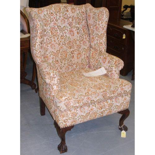 American. Chippendale style. Late 19th century. Mahogany. Nice Centennial wingback chair with ball and claw feet and floral fabric. 44" high
