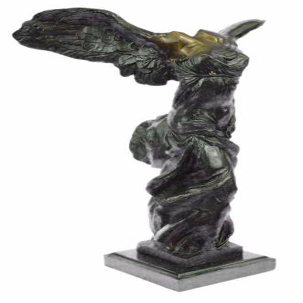 The Winged Victory of Samothrace, also called the Nike of Samothrace. This Bronze reproduction was cast using the Lost Wax Method and has a brown patina. Bronze Dimensions with Marble Base: Height 18 X Width 12 inches. Weight: 15 LBS.