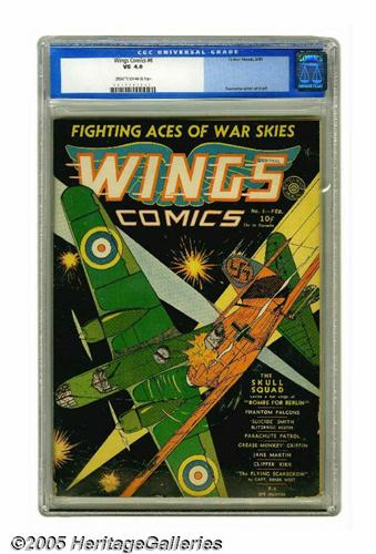 <B>Wings Comics #6 (Fiction House, 1941) CGC VG 4.0 Cream to off-white pages.</B></I> Gene Fawcette cover and art. Overstreet 2005 VG 4.0 value = $110. CGC census 2/05: 1 in 4.0, 3 higher.