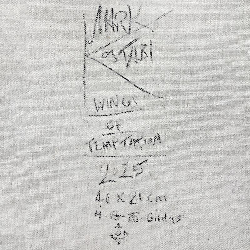 "Wings of Temptation" is an original oil painting on canvas by Mark Kostabi, hand signed by the artist. This piece comes custom framed. Includes Certificate of Authenticity. Measures approx. 26" x 28.5" (frame), 16" x 18.5" (image).