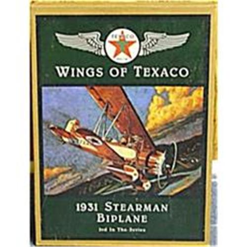 Third issue in the Ertl Wings of Texaco series, this authentic to scale replica of the 1931 Stearman Biplane is in mint collectible condition.<BR><BR>The 'Texaco 14' Stearman was purchased for a little under $15,000 from the Stearman Aircraft Company of Wichita, Kansas in 1931. Built with a 300 hp Wasp Jr. radial engine which delivered a top speed of 145 m.p.h. and a maximum range of 720 miles, earning praises from young pilots for being a remarkably easy and forgiving plane to fly. This particular plane was promptly put to work as a rapid transportation vehicle for the Texaco General Domestic Sales Department under J.D. Jernigan. It was later transferred to the Northwestern Territory and then on to the Central Territory and continued to serve Texaco until its retirement in 1936.<BR><BR>Both plane and box are in original unused mint condition and includes all original paperwork. Acquired from an estate collection of a Texaco corporate employee.<BR><BR>