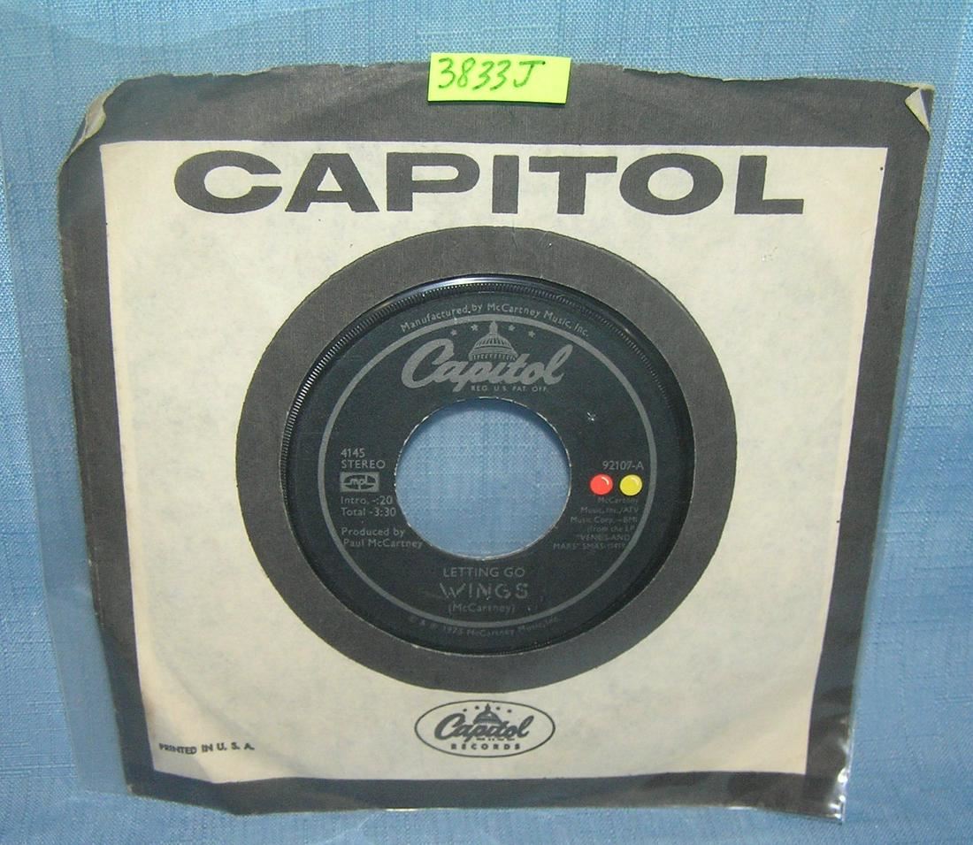 Wings with Paul McCartney vintage 45 RPM record on Capitol featuring Letting Go and You Gave Me the Answer est. value $15.00-$20.00