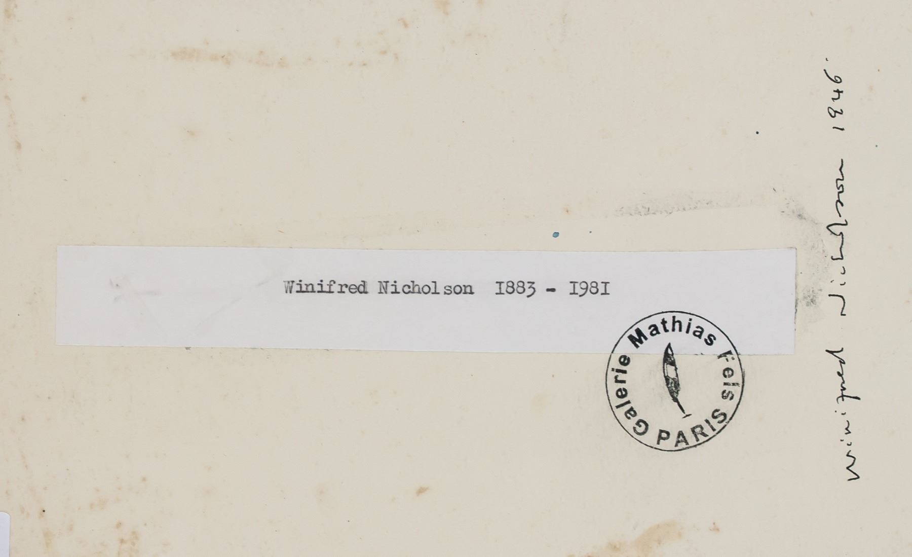 Winifred Nicholson (1893-1981) was a British painter. She was married to the painter Ben Nicholson, and was thus the daughter-in-law of the painter William Nicholson and his wife, the painter Mabel Pryde. She was the mother of the painter Kate Nicholson