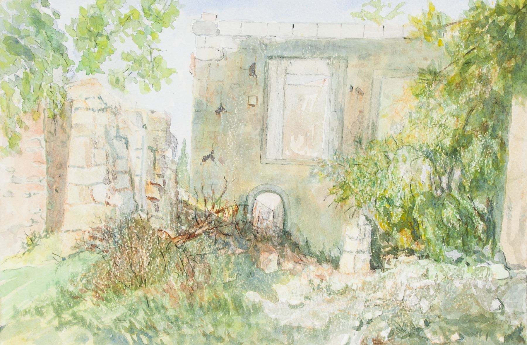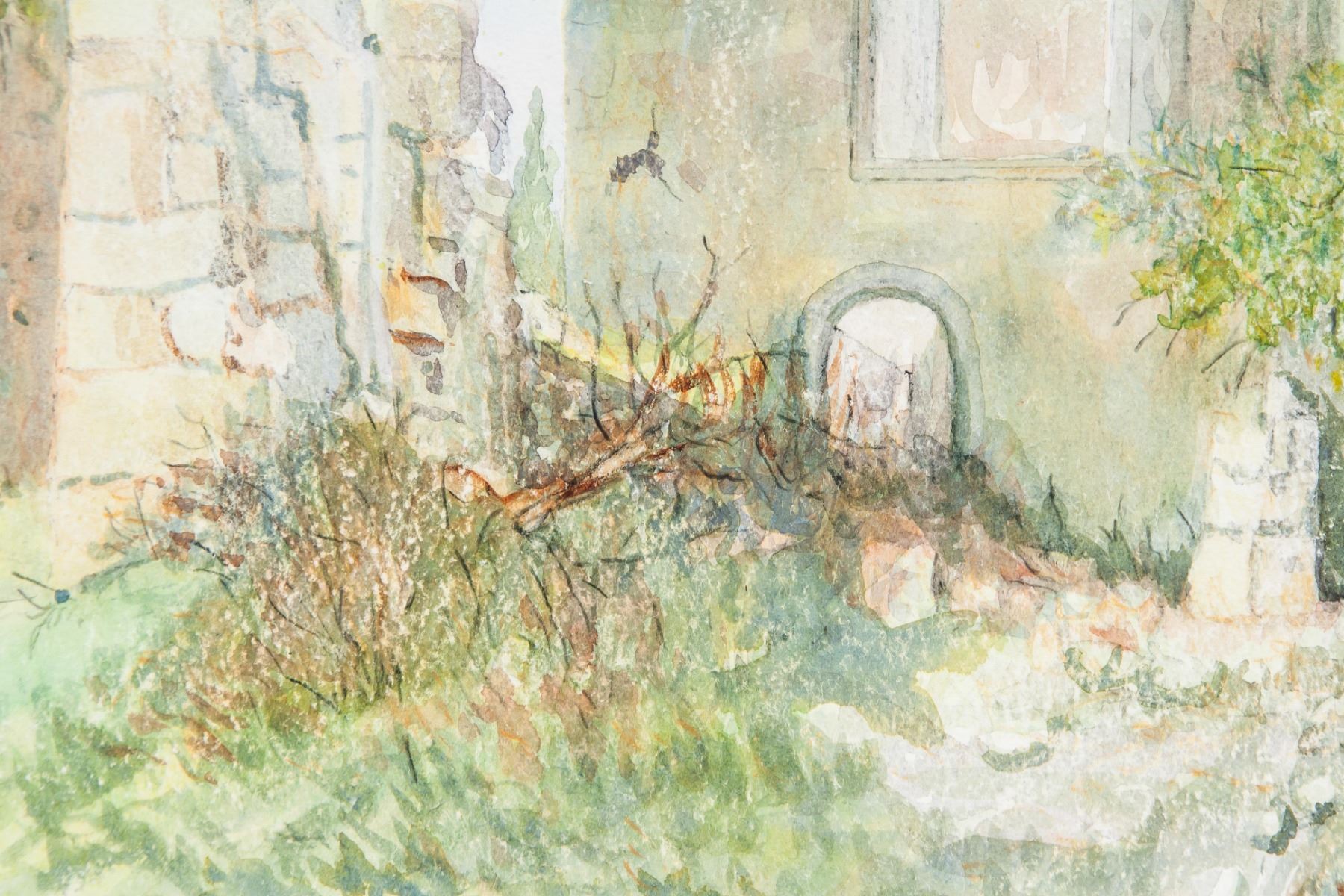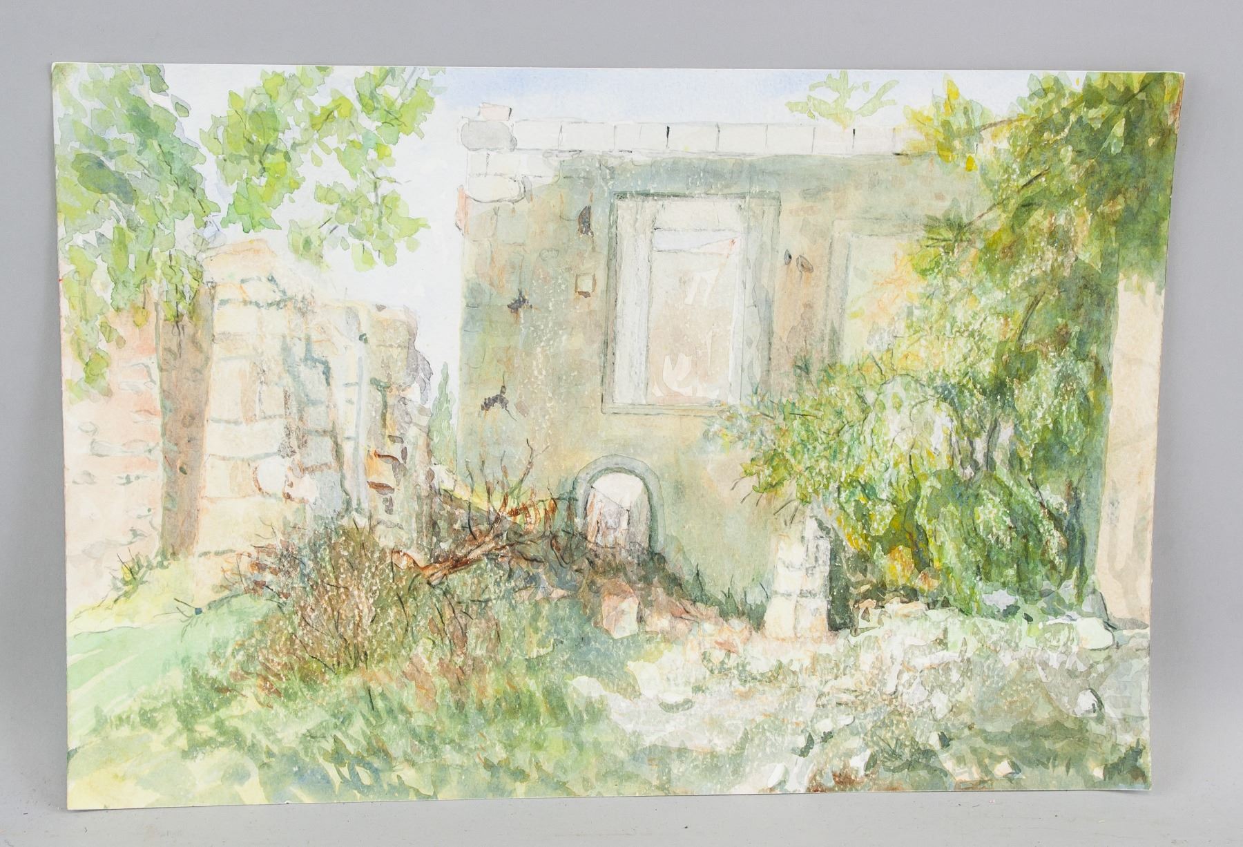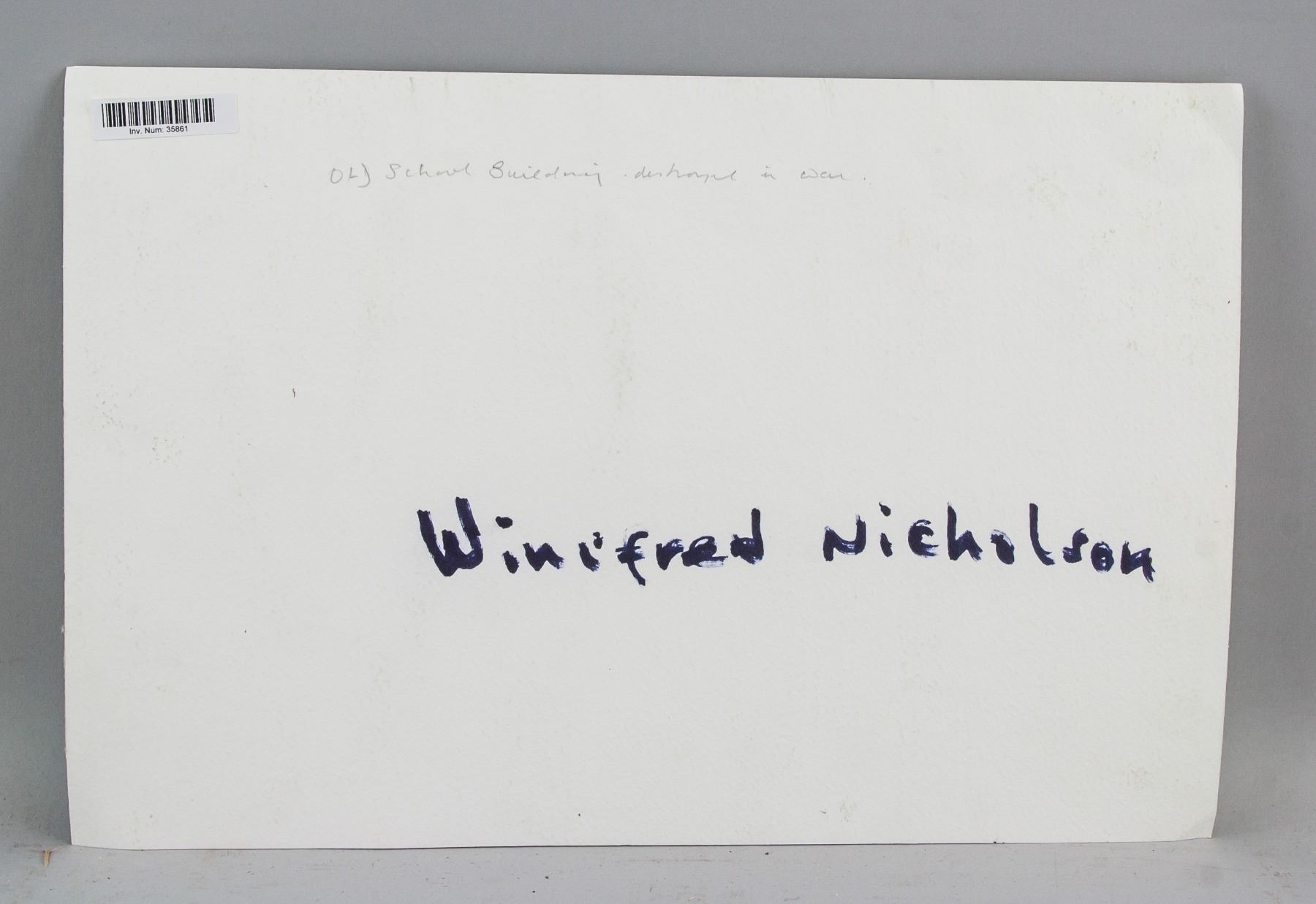 Watercolor on board, featuring landscape scene. Inscribed Winifred Nicholson on verso. Attributed to Winifred Nicholson (1893-1981, British). 9.8 x 14.6 inch (25 x 37 cm). PROVENANCE: Private Collection (Manchester, UK)