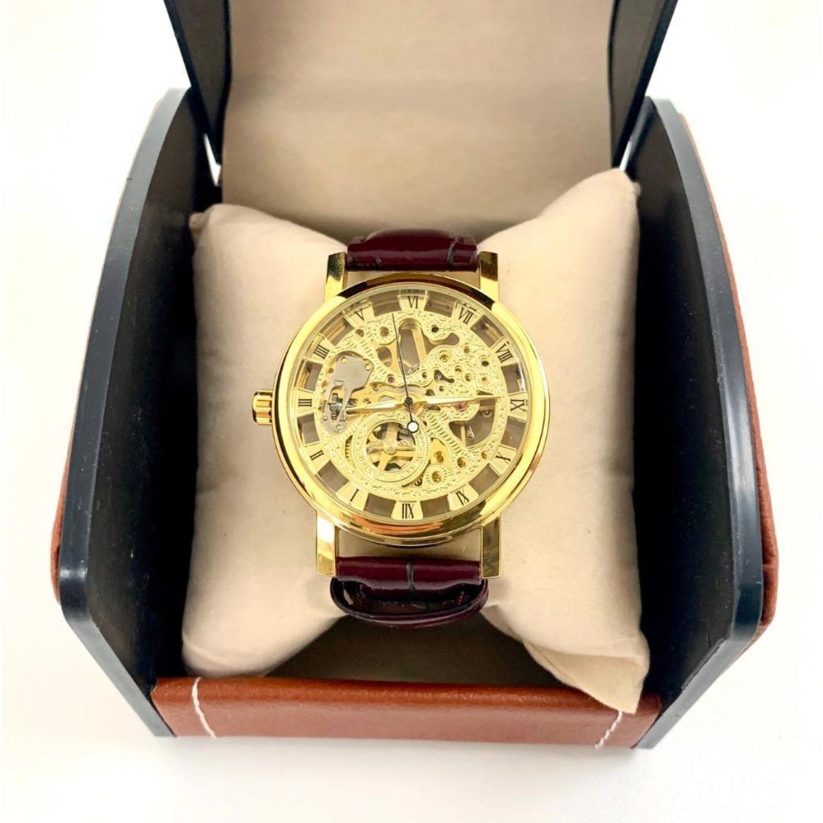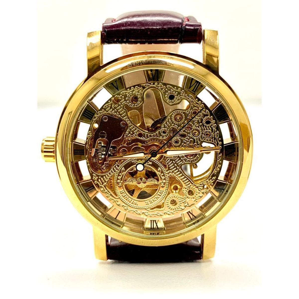 Winner Mechanical Skeleton Dial Watch Color:Â Brown Dial Style:12-Hour Dial Band Material:Leather Display :Analog Band Type:Two-Piece Strap Features: Luminous Hands Band Width:20 mm Movement: Mechanical (Hand-winding)Brand:WINNER Style: Casual Case Material:Stainless Steel Type:Wristwatch Case Size:40mm Watch Shape:Round Customized:No Water Resistance:Not Water Resistant Department:Men Â