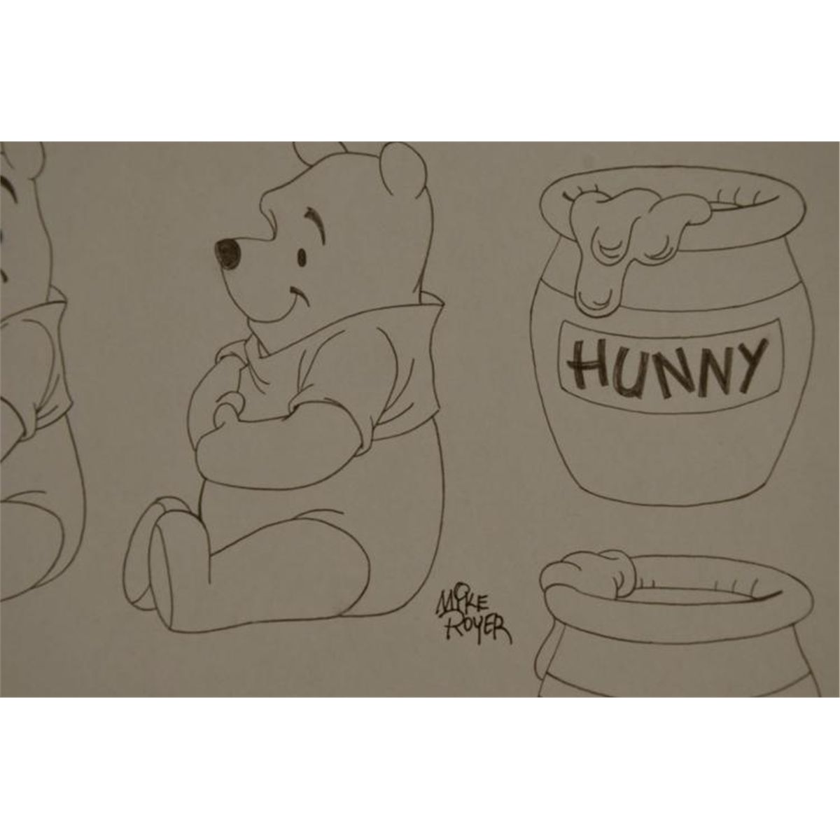 Here's that lovable bear, Winnie the Pooh, and his favorite meal, a big ol' pot of Hunny. This is an original animation production drawing, signed by the animator. * Medium: Black pencil on animator's paperSheet size: 10 1/2 x 12 1/2 inchesDetails: Numbers, lower leftCondition: Excellent