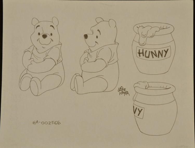 Here's that lovable bear, Winnie the Pooh, and his favorite meal, a big ol' pot of Hunny. This is an original animation production drawing, signed by the animator. * Medium: Black pencil on animator's paperSheet size: 10 1/2 x 12 1/2 inchesDetails: Numbers, lower leftCondition: Excellent